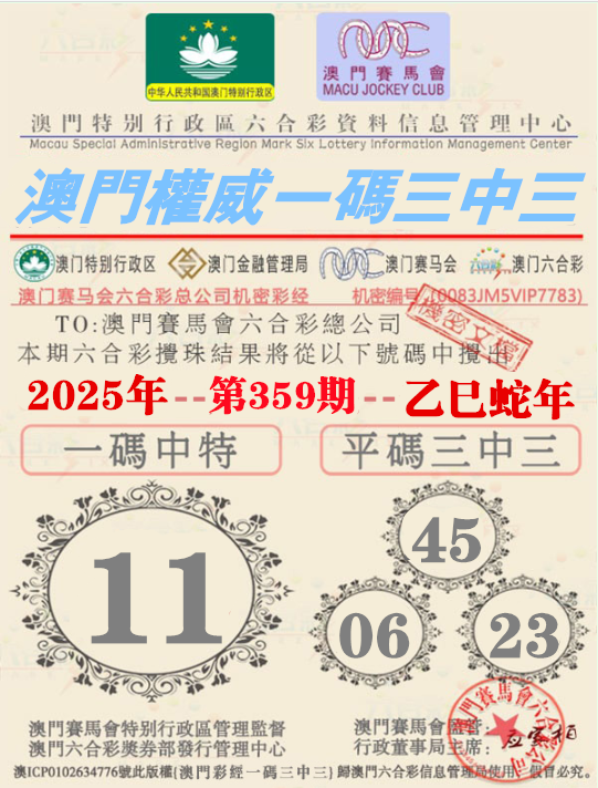 359期:【澳门权威资料】√一码三中三√ 澳门权威精准资料